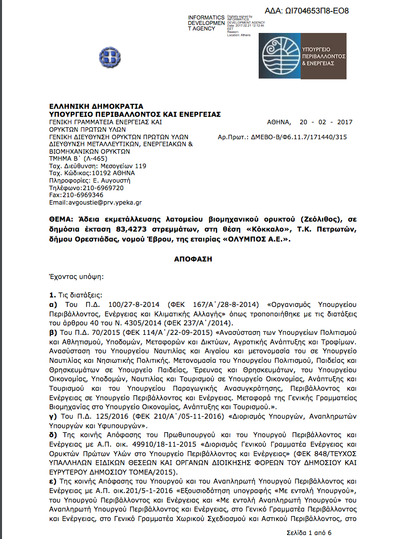 Αυτό σημαίνει πρακτικά ότι περνάμε όχι μόνο σε άλλη φάση για τον ζεόλιθο, αλλά σε άλλον κύκλο. Διότι θα είναι η πρώτη φορά στην ιστορία της Ελλάδας που θα λειτουργεί λατομείο ζεόλιθου. Κι