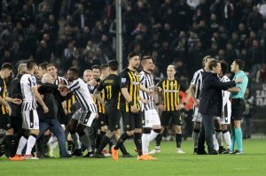 Μόνο που η άποψη αυτή είναι εκ διαμέτρους αντίθετη με τα όσα ισχυρίστηκε ο ΠΑΟΚ για δύο σημαντικά σημεία: Για την κατάσταση των ποδοσφαιριστών της ΑΕΚ στα αποδυτήρια και για το αν ο Γιώργος Κομίνης σφύριξε για να βγουν οι δύο ομάδες στον αγωνιστικό χώρο ώστε να συνεχιστεί το παιχνίδι.