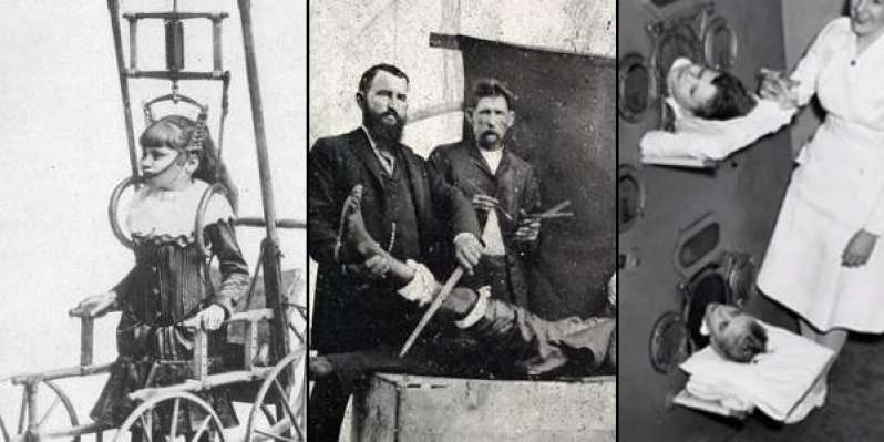 Το κατασκεύασμα του δρ Clark το 1878, το οποίο χρησιμοποιούσε επίσης για τη θεραπεία της σκολίωσης, χωρίς ιδιαίτερα αποτελέσματα.