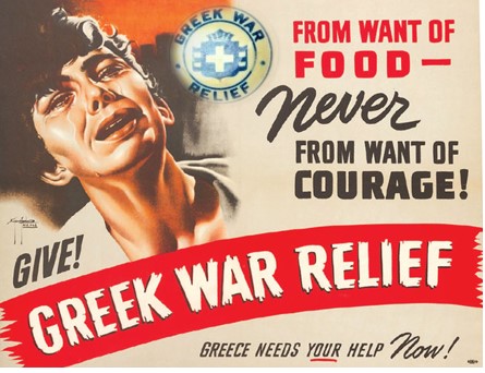 Αφίσα του Ελληνικού Συλλόγου Αρωγής Πολέμου-Greek War Relief Association (GWRA) και πλοίο με βοήθεια.