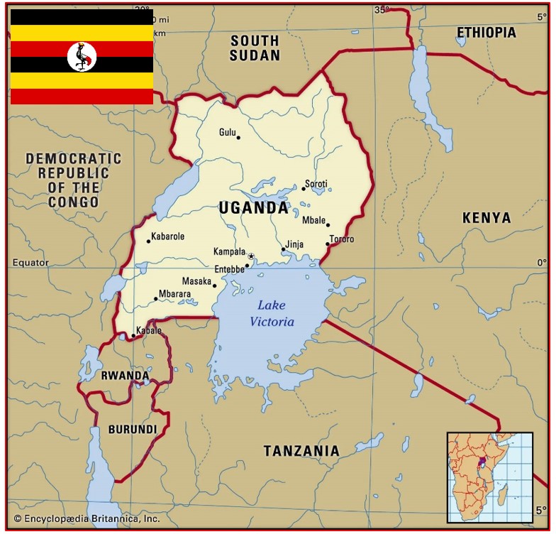 [6] Η Ουγκάντα είναι χώρα της Αφρικανικής ηπείρου με πρωτεύουσα και μεγαλύτερη πόλη την Καμπάλα. Είναι κτισμένη στις ακτές της λίμνης Βικτόριας και συνορεύει με το Κονγκό, το Νότιο Σουδάν και την Κένυα. Έχει έκταση 241.038 τ.χλμ. και πληθυσμό 45.905.417 κατοίκους (2024).