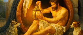 Σαν τον Διογένη όλοι εμείς, κρατώντας νοερά το δικό μας φανάρι, ψάχνουμε για Άνθρωπο με όλη τη σημασία της λέξης, Άνθρωπο με ανθρωπιά, με κοινό νου, με χαρακτήρα, με ηθικές αρχές και αξίες, με υψηλούς στόχους και ιδανικά, με αυτοσεβασμό και φιλότιμο.